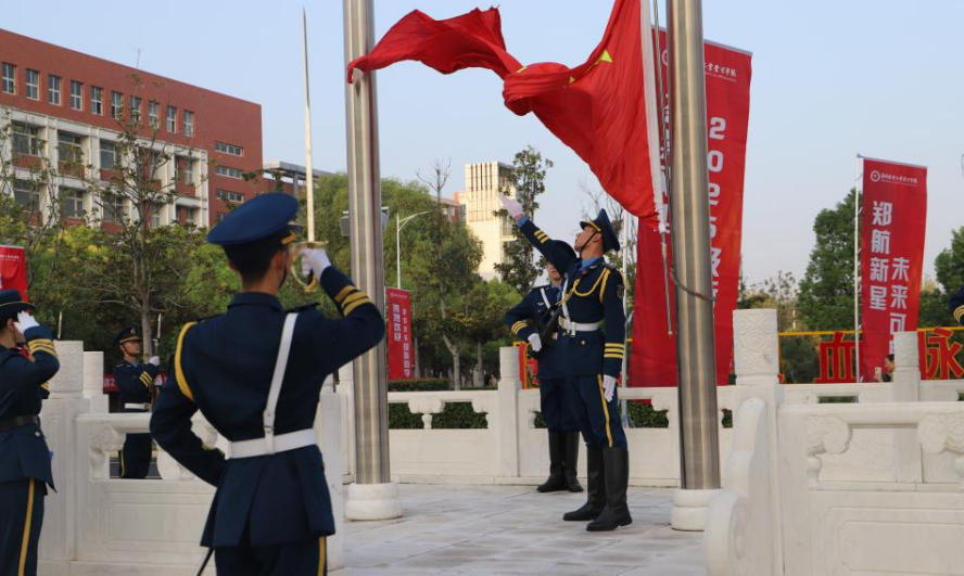 郑州航空工业管理学院举行“传承红色血脉,弘扬抗战精神”主题研究生升旗仪式