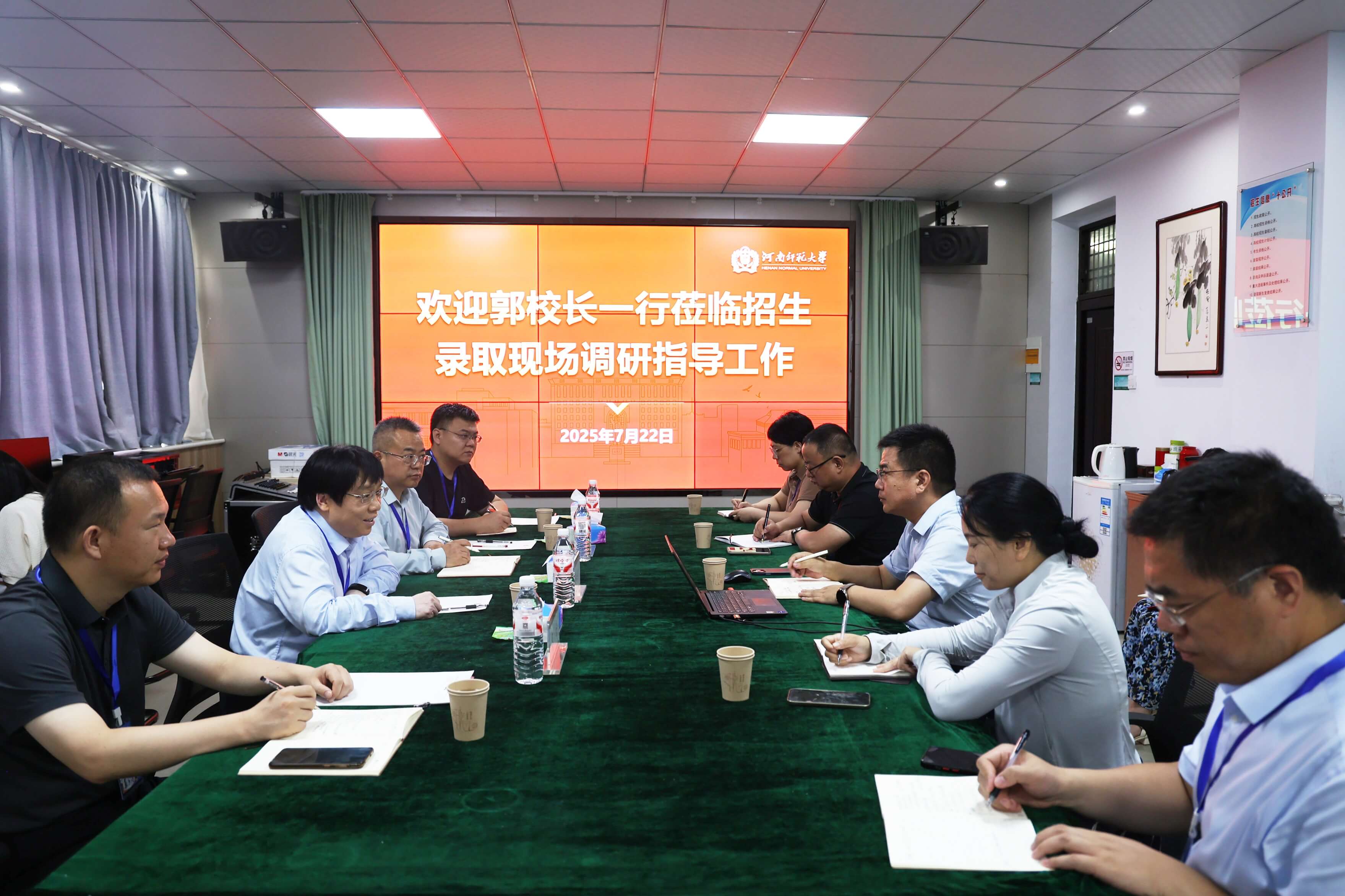 7月22日上午,河南师范大学校长郭海明,党委常委、副校长聂国兴到招生就业处调研指导2025年招生录取工作,党政办公室主要负责人陪同调研。