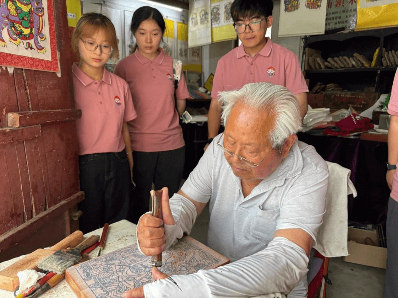 “年画焕潮”实践团三赴朱仙镇,向年画传承人学习雕版、印刷技艺,探寻传统年画现代转型路径。