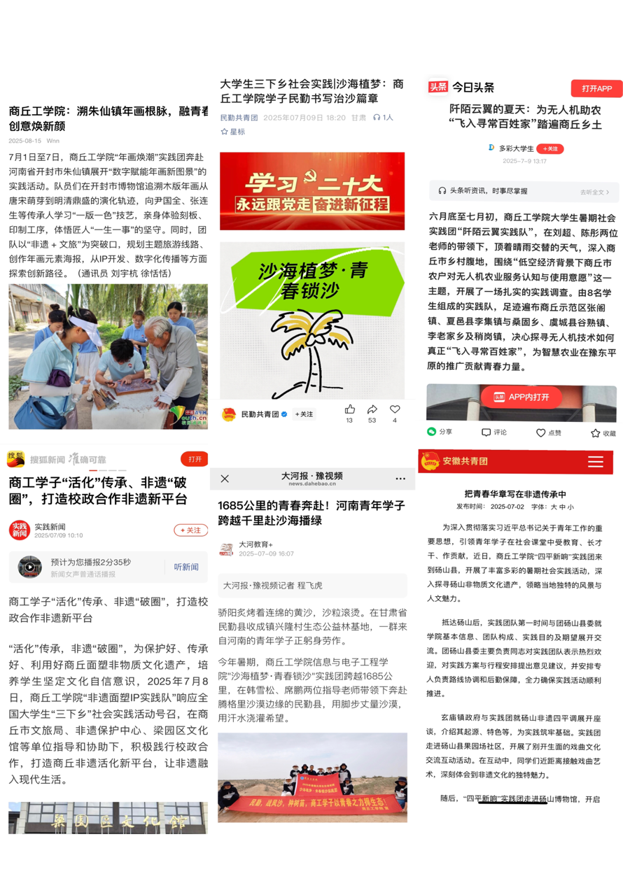 2025年暑期,商丘工学院深入落实立德树人根本任务,紧扣国家战略与时代命题,组织17支校级重点实践团队、千余名师生奔赴全国10余个省市,开展以“科技赋能乡村振兴 青春传承文化根脉”为主题的社会实践活动,用青春力量在实践沃土中书写成长篇章。