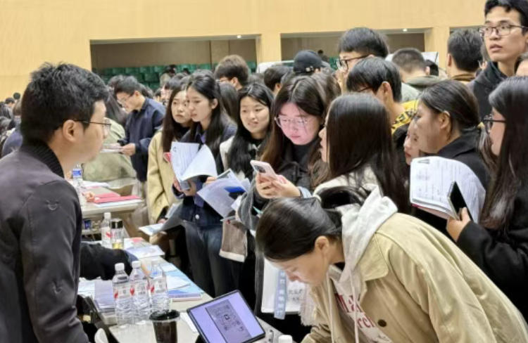 步入体育馆,热烈氛围扑面而来,用人单位细致讲解岗位信息,毕业生手持简历穿梭其间。各展台前普遍排起长队,广德市招聘专区更是热度不减,求职者围满展台咨询;简历诊断、政策咨询区同样人头攒动,学生们争相请教简历优化、就业政策等问题。不少学生笑着说,手中十几份简历很快分发完毕,还得返回宿舍补充,足见求职热情。