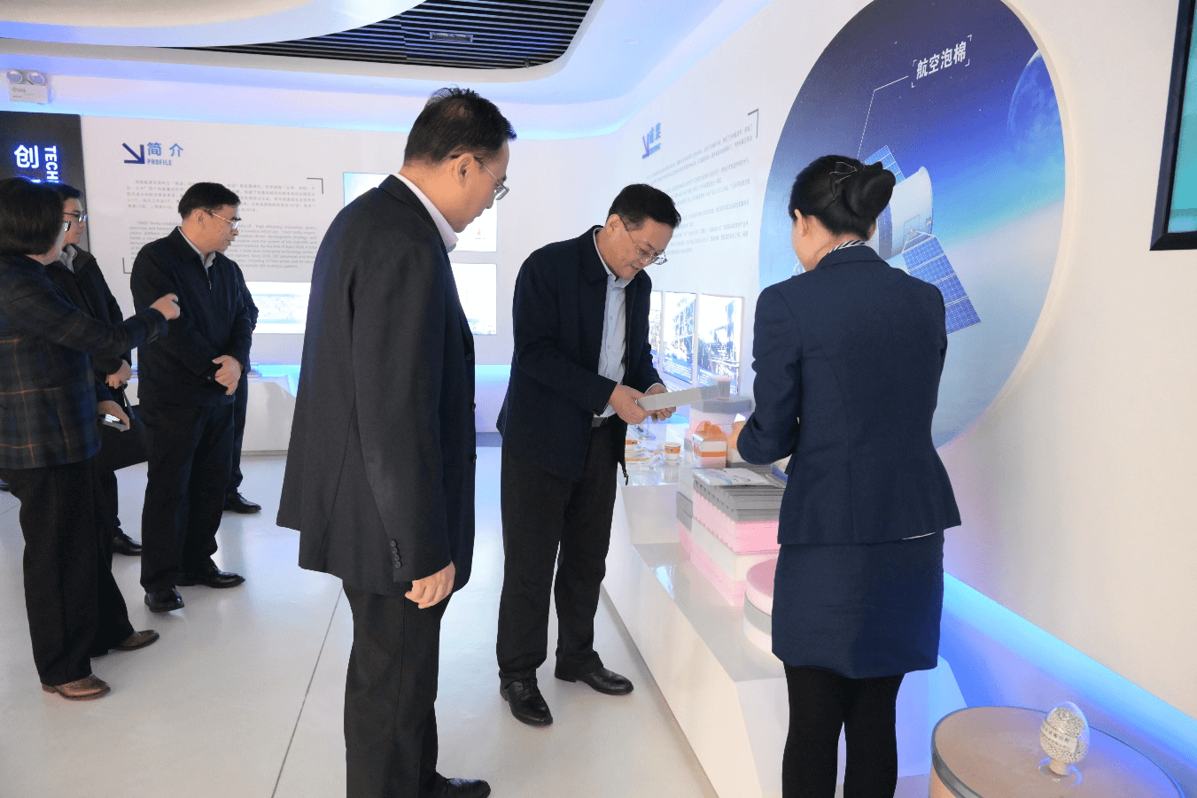 解伟一行参观了企业技术展示中心,深入了解企业运营模式与技术创新体系,并与在集团工作的学校毕业生代表进行了亲切交谈。