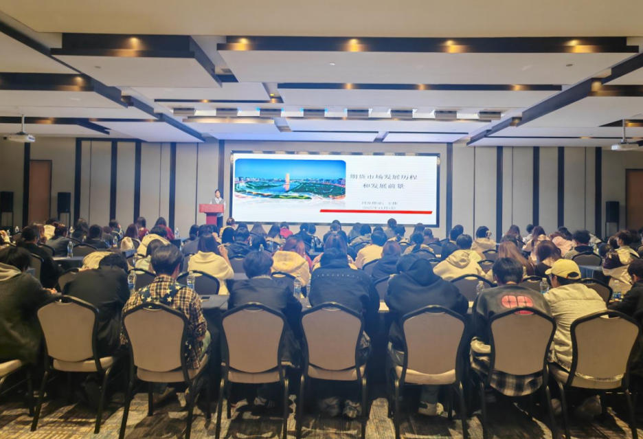参观结束后,兴业期货河南分公司负责人路璐、河南同舟棉业期货研究院副院长王伟分别开展专题讲座,讲座以“中国期货市场发展历程与郑州期货市场现状”为核心,为新生们搭建起系统的行业认知框架。讲座开篇,王伟首先从期货的名字来源讲起,结合历史背景解释“期货”一词的含义——“期”即“未来、约定时间”,“货”指“商品、资产”,期货本质是“约定在未来特定时间交割特定商品或资产的标准化合约”,这一通俗解读让新生快速理解名称与核心属性的关联。路璐进一步阐释期货的核心用途,说明期货最初是为解决“农民担忧未来粮价下跌、商人担忧未来粮价上涨”的供需矛盾而生,通过提前锁定交易价格,帮助产业链上下游主体规避价格波动风险,随着市场发展,其用途逐步拓展到“价格发现”,为市场提供公允的未来价格预期,成为实体经济风险管理的重要工具。在期货发展前景部分,王伟提炼三大核心方向:一是技术赋能,人工智能、大数据等技术融入交易全流程,提升市场效率与风险管理精准度;二是开放深化,中国期货市场扩大境外参与、丰富国际化品种,更深度融入全球市场,参与国际定价;三是功能拓展,突破传统边界,向绿色金融、乡村振兴、产业链协同等领域延伸,强化服务实体经济价值。
