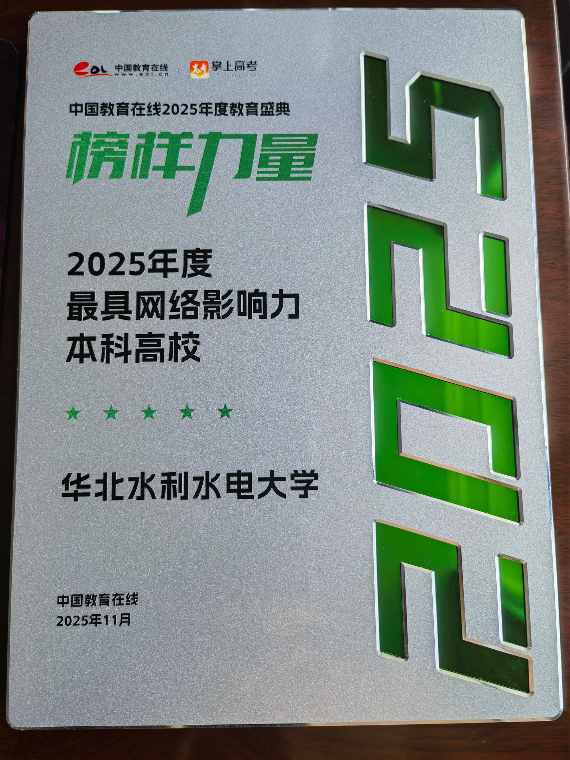 近日,中国教育在线“榜样力量·2025年度教育盛典”优秀案例名单公布。华北水利水电大学凭借极具创新性与前瞻性的招生宣传策略,以及扎实过硬的宣传执行实力,从众多高校中突围,获评“2025年度最具网络影响力本科高校”。