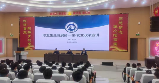 为落实河南省教育厅部署,助力新生转换角色、树立正确职业观,10月10日下午,信阳工程职业学院在百花厅为2025级机电与信息工程学院、汽车工程学院的新生开展以“凝心聚力助就业不负韶华早扬帆”为主题的职业生涯发展第一课,由学校就业创业指导中心曲晓主讲。