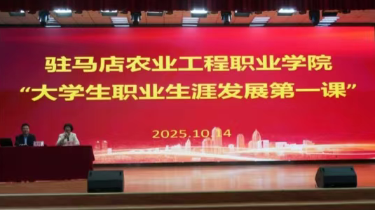 10月14日下午,驻马店农业工程职业学院“大学生职业生涯发展第一课”专题讲座在思源楼演播大厅举办。本次讲座由招生就业处特邀河南大学李从国教授主讲,副校长郭冬主持,全体教师及2025级新生参加。