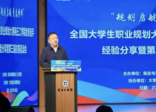 商丘工学院党委副书记王峰在讲话中,首先代表学校向所有获奖师生及单位表示热烈祝贺,并围绕职业规划大赛的核心价值与育人使命,发表了饱含期许的讲话。他强调,职业规划大赛绝非单纯的竞技比拼,而是撬动学生职业成长的“总开关”和激活学习内驱力的“强心剂”;对学生而言,它既是破除迷茫的“导航仪”,帮助大家认清自我、明确方向,更是锤炼本领的“练兵场”,助力学子在实践中提升核心素养,是学子青春成长不可或缺的“关键引擎”。