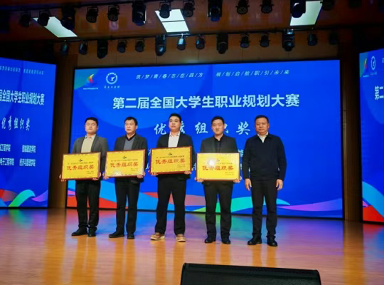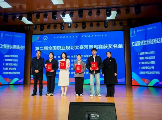 颁奖环节简洁有序,现场对在第二届全国大学生职业规划大赛河南省赛中斩获佳绩的优秀选手及“校级优秀组织奖”获奖单位进行表彰,以榜样力量激发全场师生参与赛事、深耕职业规划的热情。