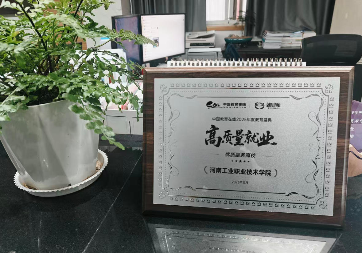 河南工业职业技术学院荣获“2025高质量就业·优质服务高校”称号