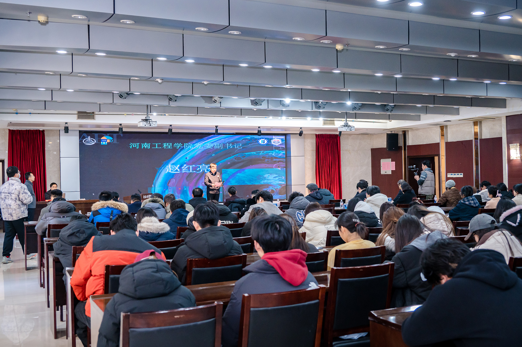 1月7日上午“探秘宇宙万象·共绘创意星河”东方航天港首届文创设计大赛颁奖典礼暨成果展在河南工程学院举行。此次活动筹备及举办期间,校党委书记解伟、校长李利英给予具体指导,要求大赛结合专业特色,凝聚“政、企、校”力量,切实做深做实社会服务。校党委副书记赵红亮、东方航天港集团文化旅游有限公司负责人孙语谦、北京中戎恒创文化发展有限公司董事长许海涛及艺术设计学院领导班子出席活动,西安美术学院、郑州轻工业大学等十余所高校相关负责人及师生代表100余人参会,活动由艺术设计学院院长朱明主持。