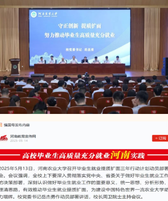 制度建设方面,制定印发《河南农业大学毕业生就业提质扩面三年行动计划实施方案》《河南农业大学2025年招生宣传工作方案》《河南农业大学2026届毕业生高质量充分就业工作方案》《深入推进2025年中国国际大学生创新大赛工作实施方案》等10余项专项制度,构建招生、就业、双创“三位一体”协同推进机制,明确工作标准、压实责任链条,为各项工作高质量开展提供坚实制度保障。