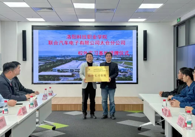 在联合汽车电子有限公司,校企合作部总监许尤立、经理池浩与学校代表团进行了深入座谈。双方回顾了长期合作历程,围绕新能源汽车技术、汽车制造与试验技术、新能源汽车检测与维修技术等专业的人才培养、实训基地建设、课程共建等展开交流。许尤立高度评价洛科毕业生在企业中的表现,并表示随着企业新能源业务拓展,2026年将进一步扩大招聘规模,为学校毕业生提供更多优质岗位。座谈期间,双方举行了校外实习基地授牌仪式。邹利斌一行还实地参观了企业生产车间,详细了解先进生产工艺与智能化管理体系。