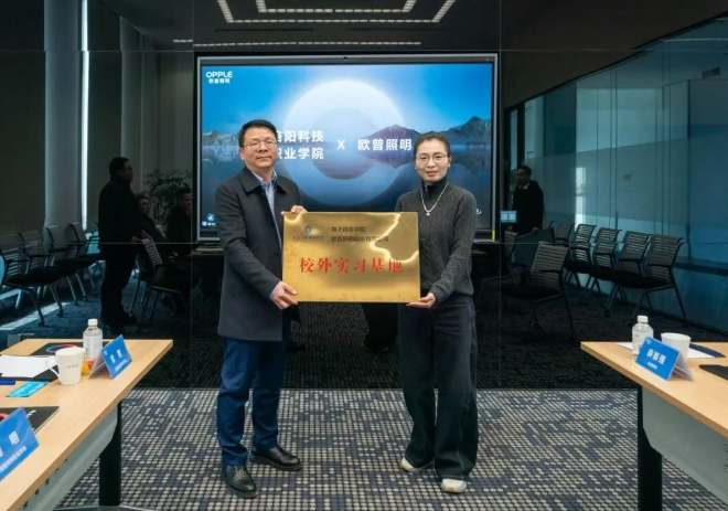 在苏州欧普照明有限公司,双方在交流中达成多项合作意向,并互授实习基地牌匾。欧普照明将为学校学生提供涵盖灯具研发、生产管理、市场营销等多领域的实习与就业岗位。未来,双方还将在人才培养、课程开发、科研项目等方面开展全方位合作,共同探索“订单式”培养模式,进一步深化产教融合,构建“岗位实践+定向培养”协同育人体系。