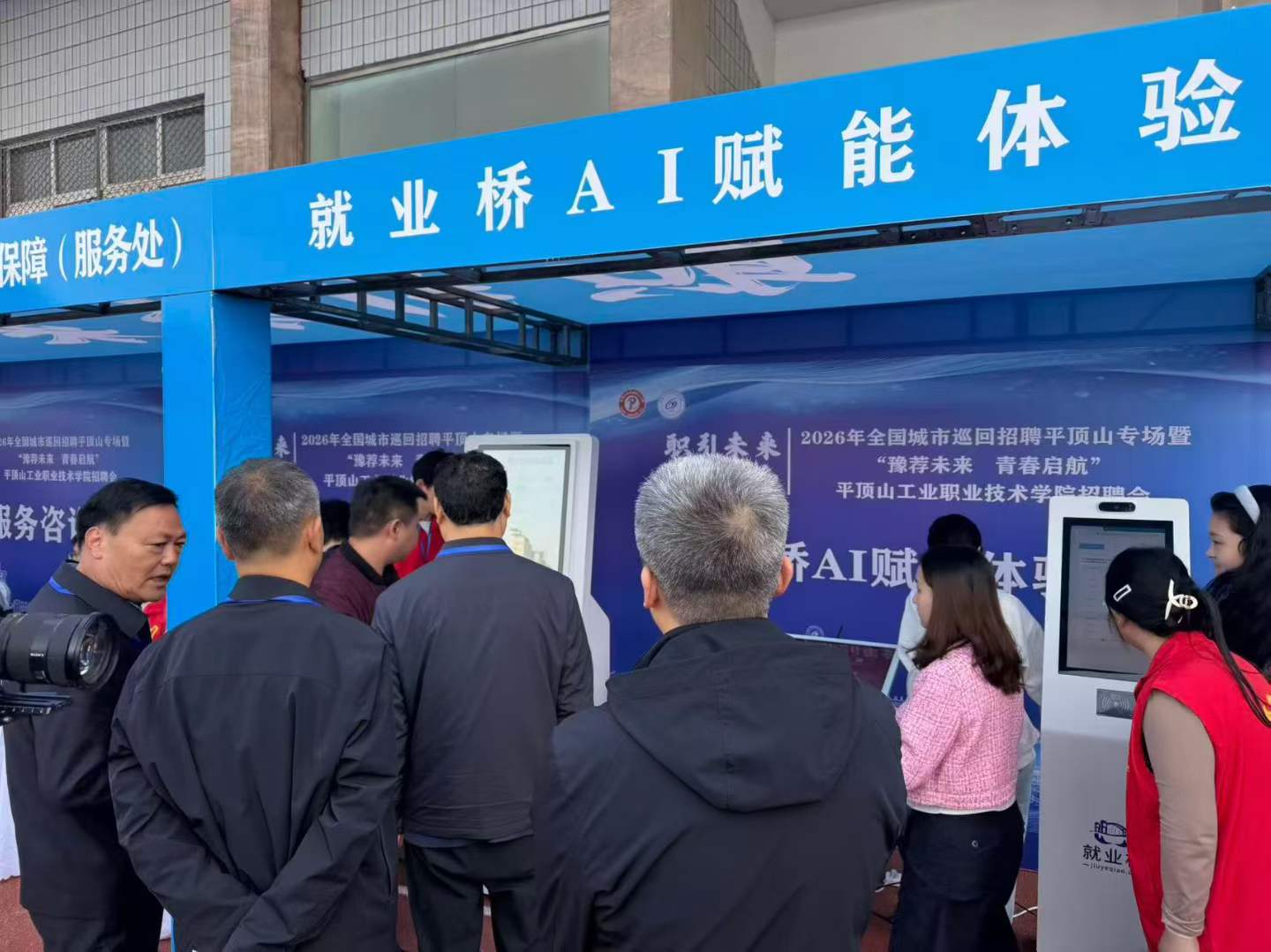 此外,平顶山市人力资源和社会保障局、湛河区人力资源和社会保障局、学校就业处还在现场设置了一站式服务中心,提供政策宣传、简历打印和法律咨询等服务,“AI求职赋能体验区”通过模拟面试演练、智能简历修改、职业测评等AI功能助力毕业生顺利求职,受到了现场学生的好评。