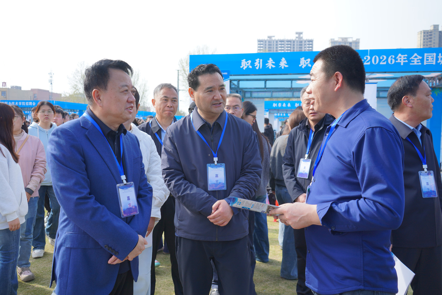平顶山市人力资源和社会保障局党组书记、局长侯树辉,学校校长李树伟,平顶山市人力资源和社会保障局党组成员、副局长李晗,二级调研员陈文政,学校副校长杨立峰,平顶山市人才交流中心主任王玉堂、市劳务输出服务中心负责人王晓楠等领导到现场指导,与用人单位、毕业生进行深入交流。