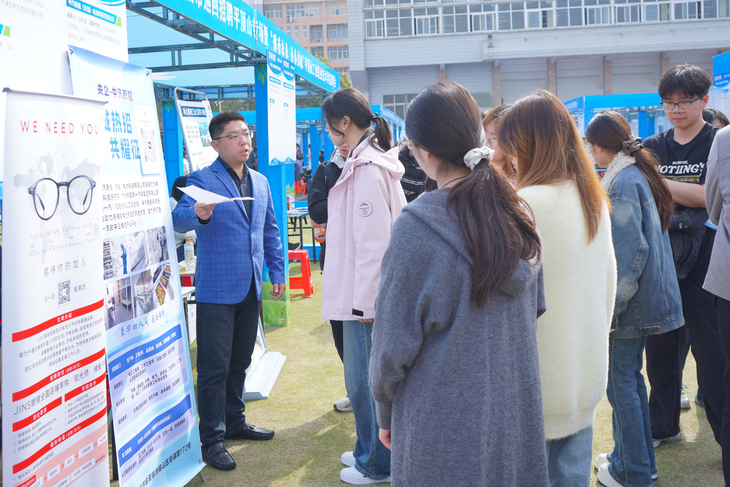 本次招聘会规模盛大,吸引淮河能源、奇瑞新能源、无锡华润安盛科技、舞阳钢铁等206家优质企业参会,共提供就业职位385个、岗位12014个,覆盖智能制造、自动化、汽车装备、煤矿开采、信息技术、医护健康等多个行业领域,精准匹配不同专业学生求职需求。招聘会创新采用“线上+线下”全域对接模式、“精准匹配+深度交流”多维赋能的现代化人才洽谈平台,学生可扫码或通过学校智慧校园投递简历;同步开通直播带岗服务,邀请淮河能源、奇瑞新能源等企业负责人做客直播间,线上点赞量超1万人次,有效拓宽引才覆盖面。