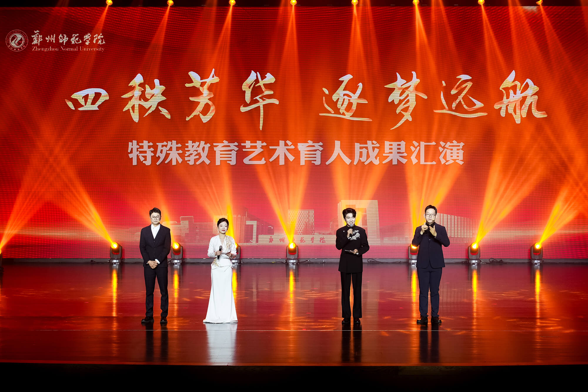 4月1日晚7点,郑州师范学院教育学部“四秩芳华·逐梦远航——特殊教育艺术育人成果汇演”在嵩山学堂温情上演。本次汇演以特殊教育四十年育人成果展示为核心,全面呈现学部深耕特教领域四十载的人才培养成效与办学积淀,向全体师生、返校校友献上一场兼具温度与质感的艺术盛宴。