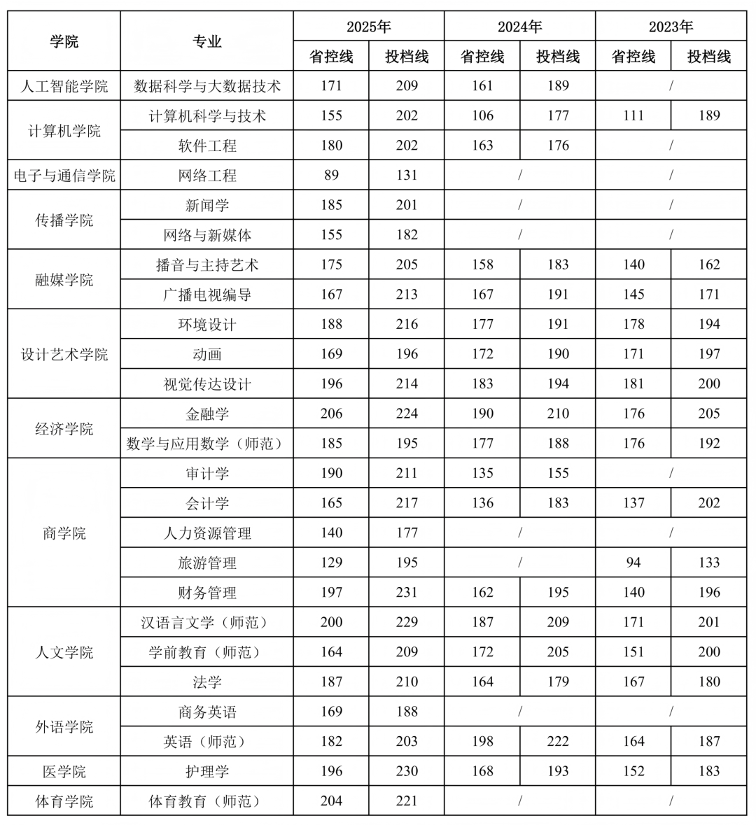 河南开封科技传媒学院2023-2025年专升本录取情况