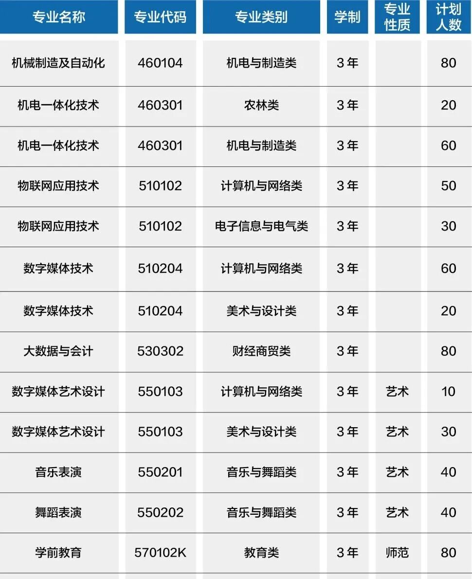 2026年对口招生计划表