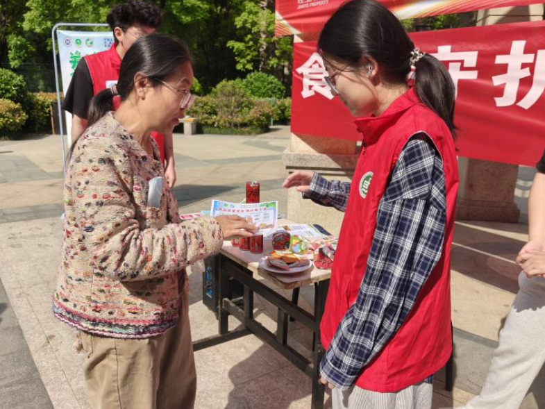 活动现场,实践团队通过悬挂主题宣传条幅、摆放科普展板、发放知识宣传彩页、播放食品安全科普视频,组织居民扫码学习食品安全控制知识等多元化形式,以亲民务实的态度,为社区居民带来了一场贴近生活的食品安全科普宣传。本次科普宣传依据《中华人民共和国食品安全法》,针对社区居民特点,围绕中国居民膳食宝塔解读、特殊人群膳食安全注意事项、网络食品安全安全性、转基因食品安全性等居民日常关注的热点内容,团队用通俗易懂的语言,为居民解读食品安全专业知识,传递科学健康的膳食理念。