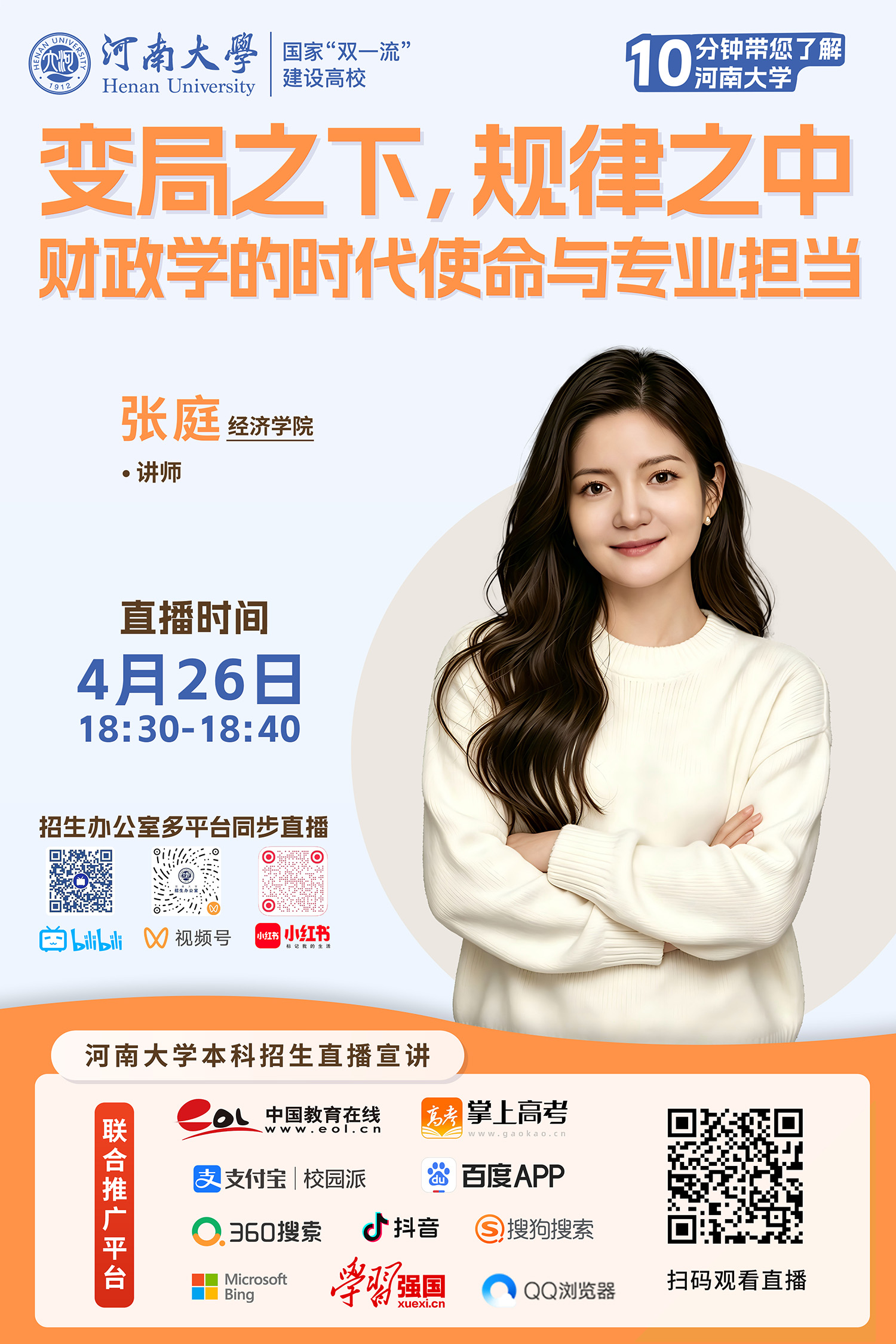 携手云端 圆梦河大|4月22日-4月26日,河南大学2026年本科招生直播宣讲(二)
