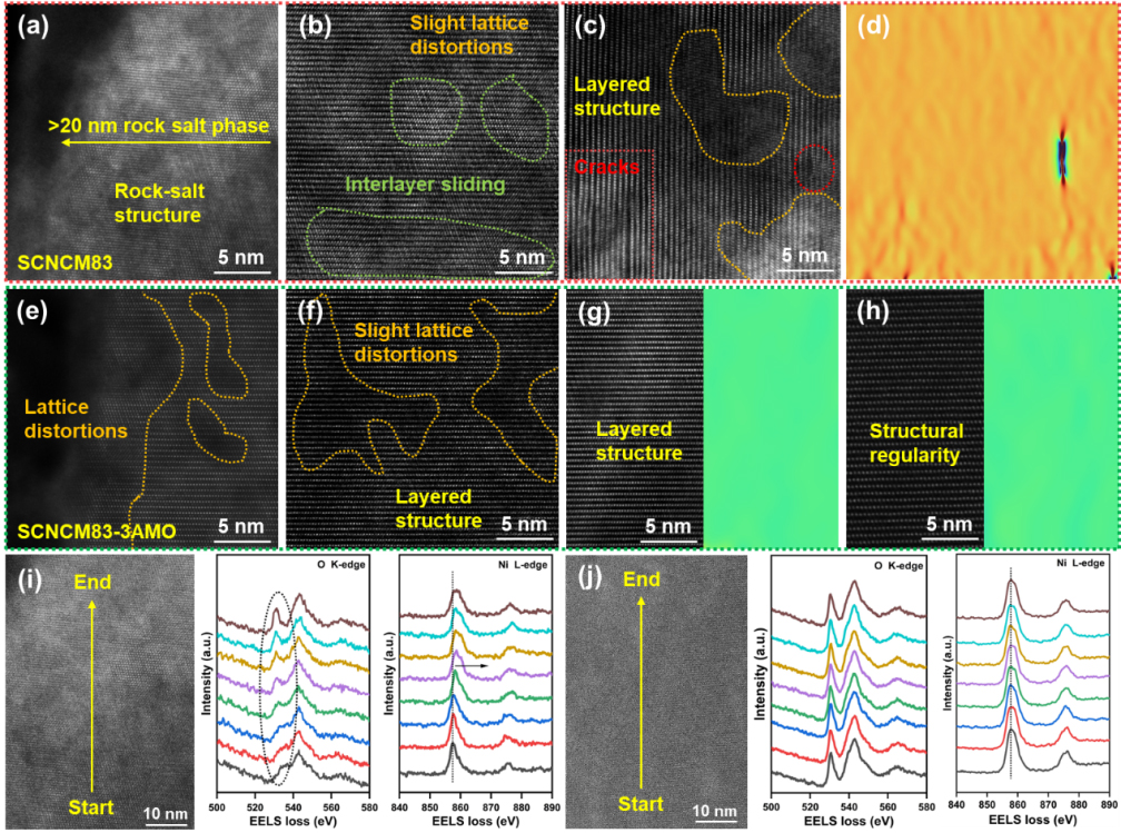 高镍单晶正极材料凭借极高的能量密度,是下一代锂离子动力电池极具应用前景的核心正极材料。但材料在充放电循环相变过程中易产生结构应力,诱发电极微裂纹滋生与岩盐杂相生成,导致电池循环寿命大幅衰减,严重制约了高镍电池的产业化应用。针对该行业技术瓶颈,本研究创新提出柔性掺杂改性策略,通过在电极表面构筑高弹性包覆层,有效缓冲循环应力、抑制结构开裂,显著提升高镍单晶正极结构稳定性,为破解高镍正极材料结构失效难题提供了新型技术思路。该研究得到省内锂电龙头企业恒一锂能科技公司支持,是平顶山学院陈昌东博士团队深化校企协同创新、服务地方新能源产业的创新研究成果。