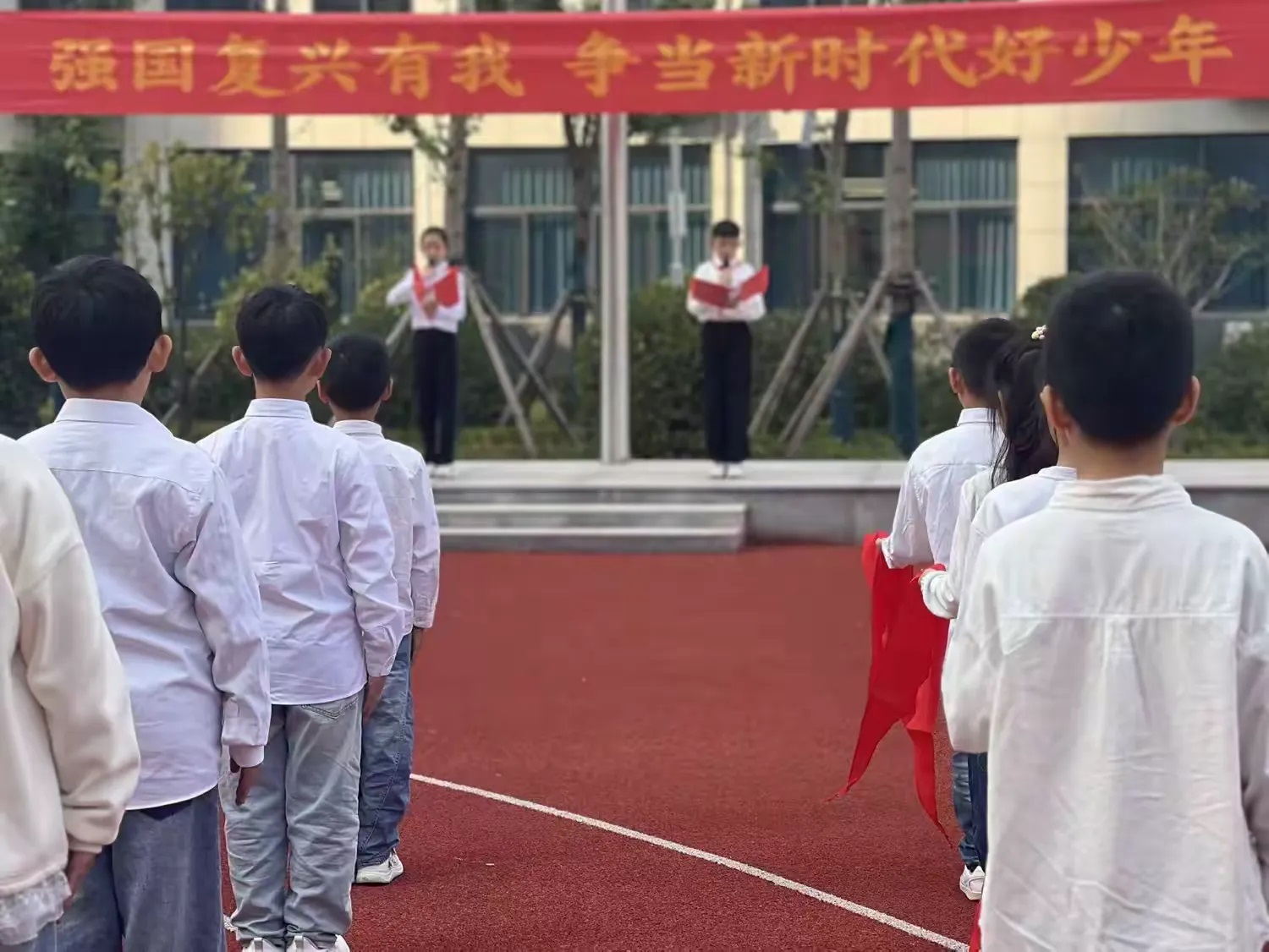 新队员们亲手为自己佩戴上鲜艳的红领巾。这一设计,旨在让队员们从入队的第一天起,就深刻体会到“自己的事自己做”的自主精神,将少先队员的光荣与责任内化于心,外化于行。一条条自主系好的红领巾,是他们送给自己最好的成长礼物。