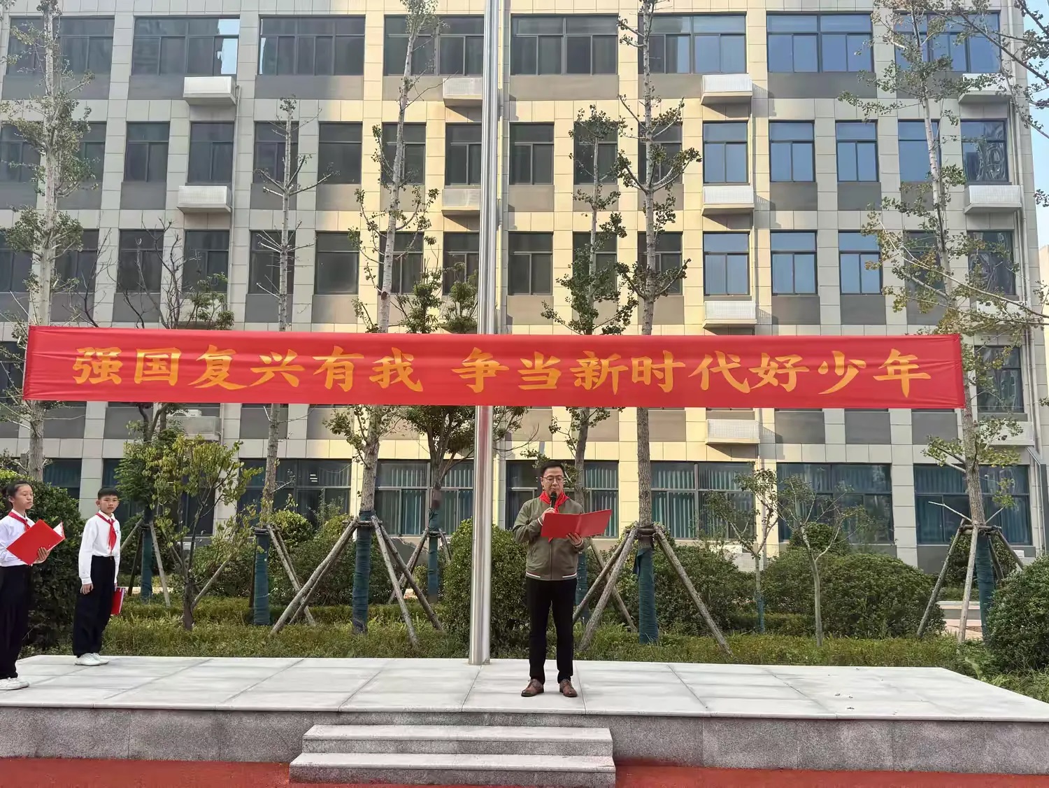 互助路小学党支部书记、互助路小学颍河校区执行校长张彦对新队员致以热烈祝贺。他希望队员们时刻以少先队员的标准,严格要求自己,队员们能够成为胸怀梦想、热爱祖国的好少年,成为勤奋学习、感恩社会的好少年,成为健康快乐、活泼开朗的好少年!