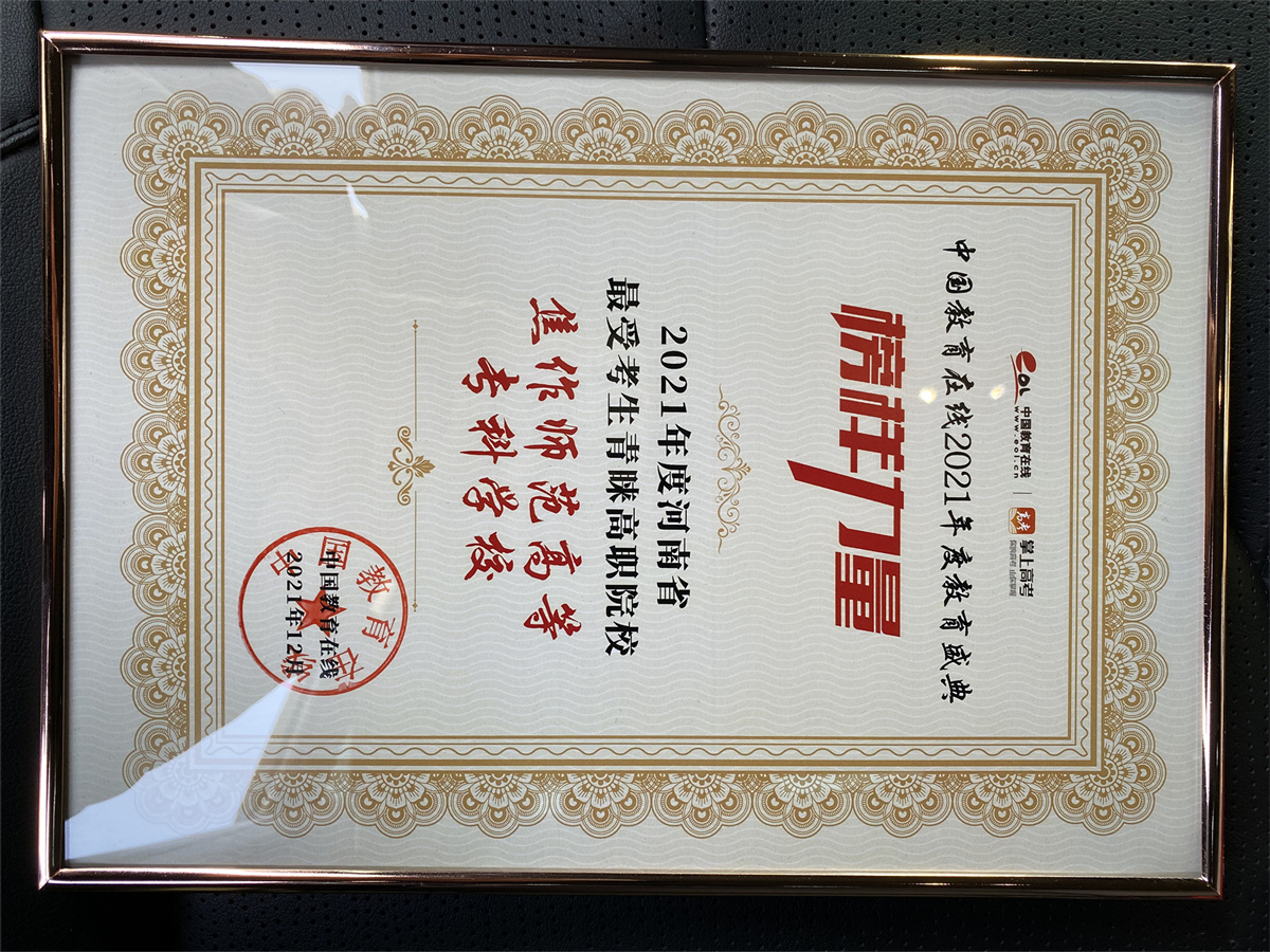 近日,中国教育在线“榜样力量·2021年度教育盛典”评选获奖名单揭晓,焦作师范高等专科学校荣获“2021年度河南省最受考生青睐高职院校”荣誉称号。