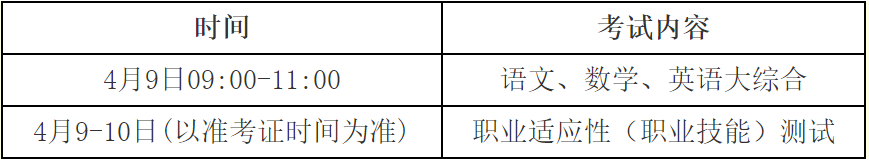 3.除技能拔尖人才以外的考生都须参加职业适应性测试,艺体类考生须同时参加职业适应性测试和艺体类职业技能测试。