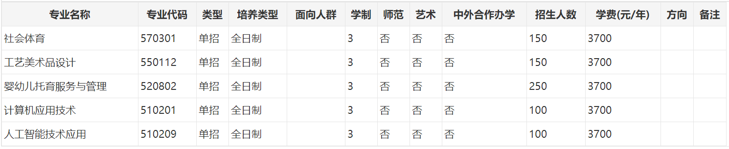 (一)招生专业:社会体育 工艺美术品设计 婴幼儿托育服务与管理 计算机应用技术 人工智能技术应用