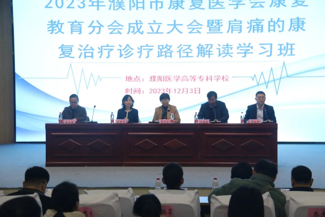 12月3日,由濮阳市康复医学会康复教育专委会主办,濮阳医学高等专科学校承办,濮阳市康复医学会康复教育分会成立大会暨肩痛的康复治疗路径解读学习班在易明楼一楼大报告厅召开。本次大会主题是“产教融合,共促康复事业高质量发展”。