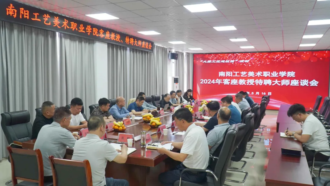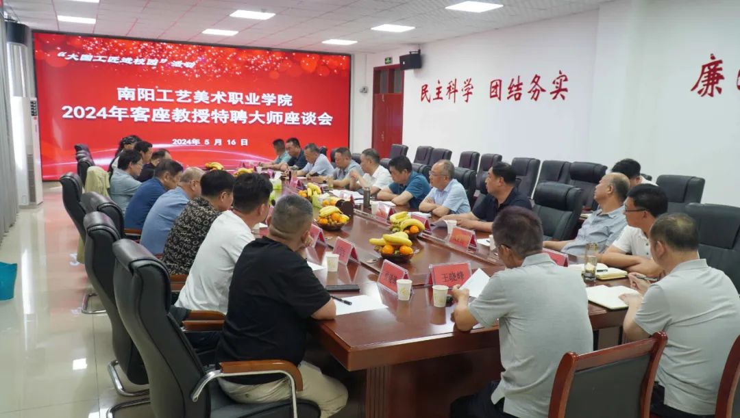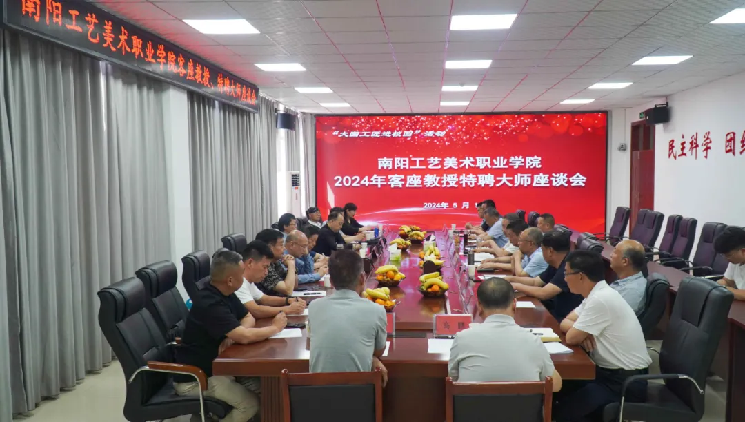 5月10日,作为学校“职业教育活动周”主题活动之一,南阳工艺美术职业学院客座教授、特聘大师座谈会在综合楼三楼第一会议室举行。学校领导与客座教授、特聘大师及部分教师代表一起,围绕“学校发展、学科建设、人才培养”三个主题,共叙情谊、共献良策、共谋发展。