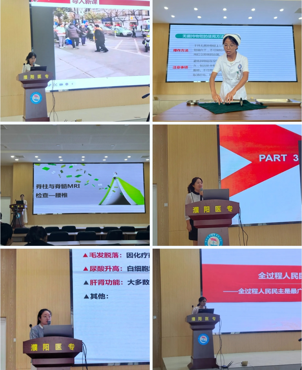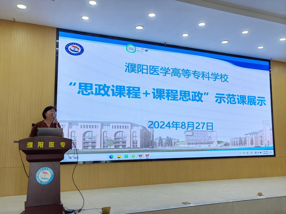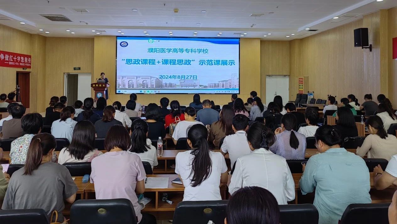 为落实立德树人根本任务,进一步推进思政课程与课程思政建设,提升教师思政课程和课程思政教学能力,促进专业课与思想政治理论课同向同行,充分发挥各类课程育人功能,2024年8月27-28日,濮阳医学高等专科学校在易明楼小报告厅举办“思政课程+课程思政”示范课观摩活动。全校近400名教师参加,副校长袁俊斋出席活动并讲话。