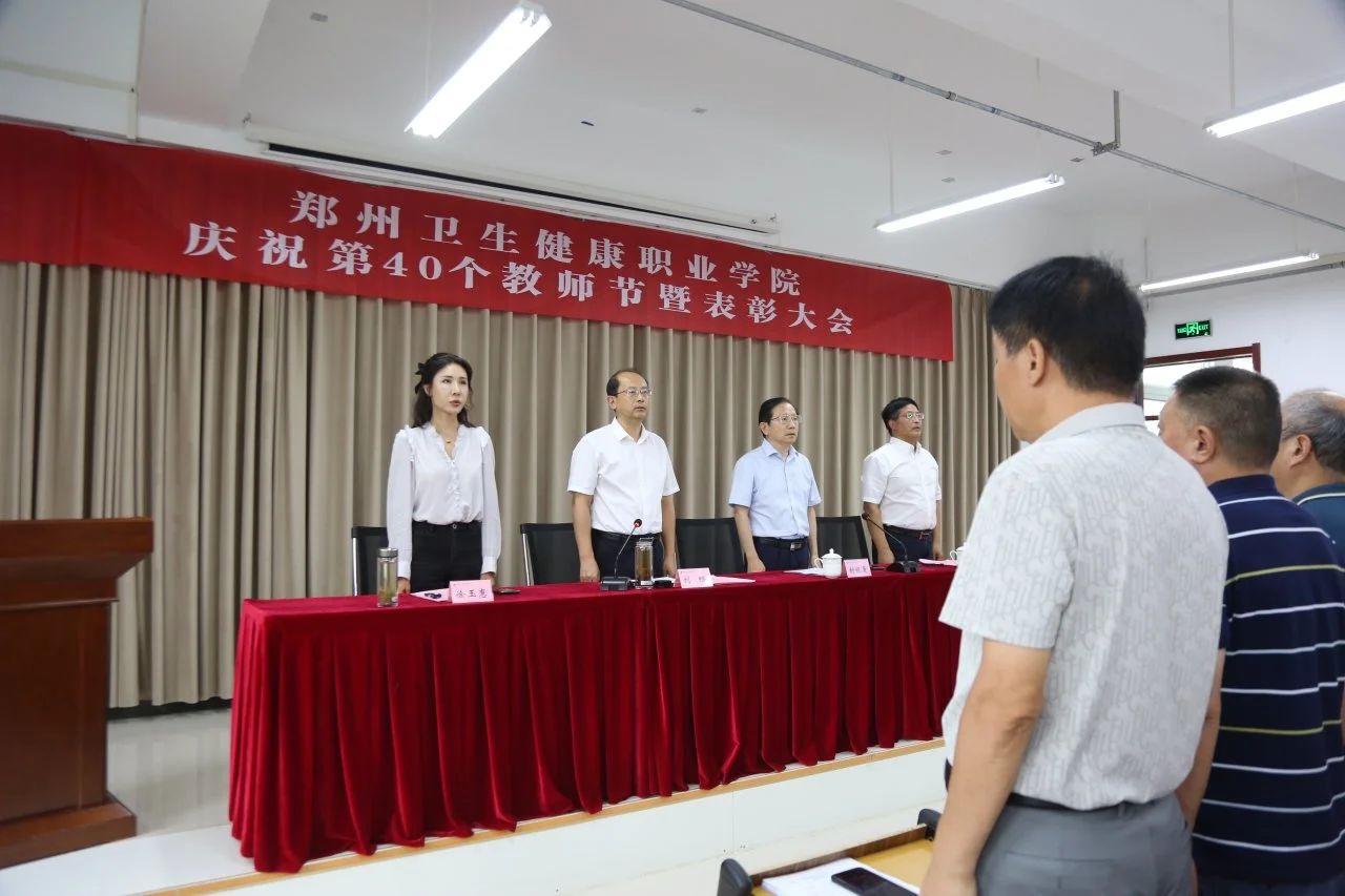 9月10日,郑州卫生健康职业学院召开教师节表彰大会,庆祝第40个教师节。校党委书记刘畅,校长、党委副书记封银曼,党委副书记徐玉惠,副校长席军生出席会议。学校中层干部、受表彰教职工代表、学生代表参加会议。党委书记刘畅主持会议。
