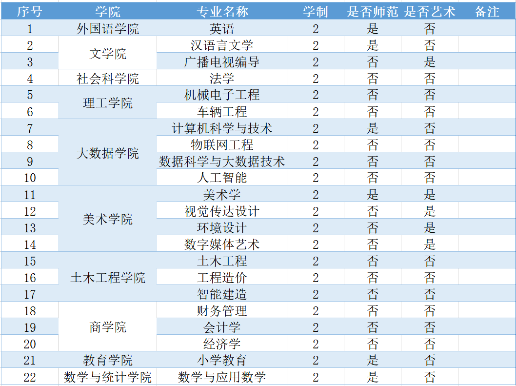 信阳学院2025年共有英语、汉语言文学、广播电视编导、法学、机械电子工程等22个专升本专业,招生代码:6518(普通专升本)、6548(退役士兵专升本);车辆工程、土木工程共2个对口本科专业,招生代码:6508,面向全省招生,欢迎各位考生报考。