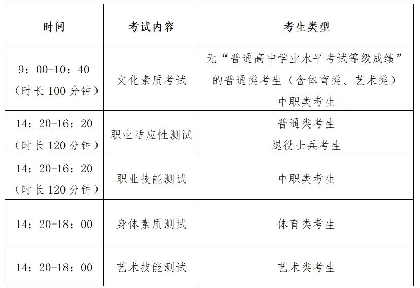该类考生将进行文化素质考试和职业适应性测试。