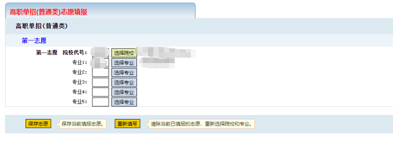 2.如果信息有误,想全部重新填写志愿,可以点击页面最下方“重新填写”按钮,清空已填写的志愿信息。