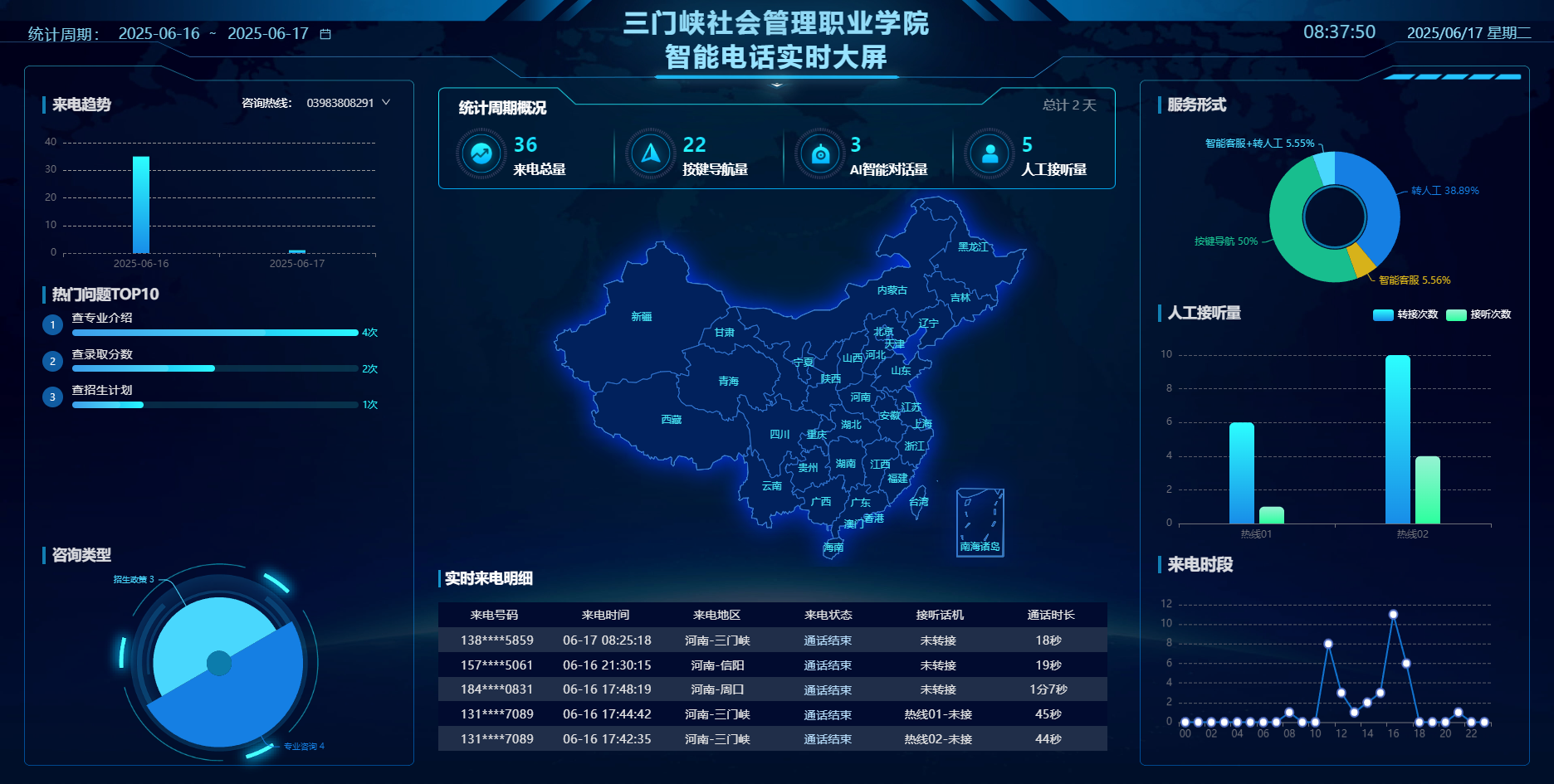 三门峡社会管理职业学院智能电话系统是基于AI大模型及学校知识库,通过深度训练打造的一款电话智能问答辅助工具,实现招生电话的智能接听与精准回复,无论是招生政策咨询、专业介绍,还是校园生活疑问,都可通过智能对话获取解答,7×24小时全天候响应,随时满足广大学子及家长的报考咨询需求。