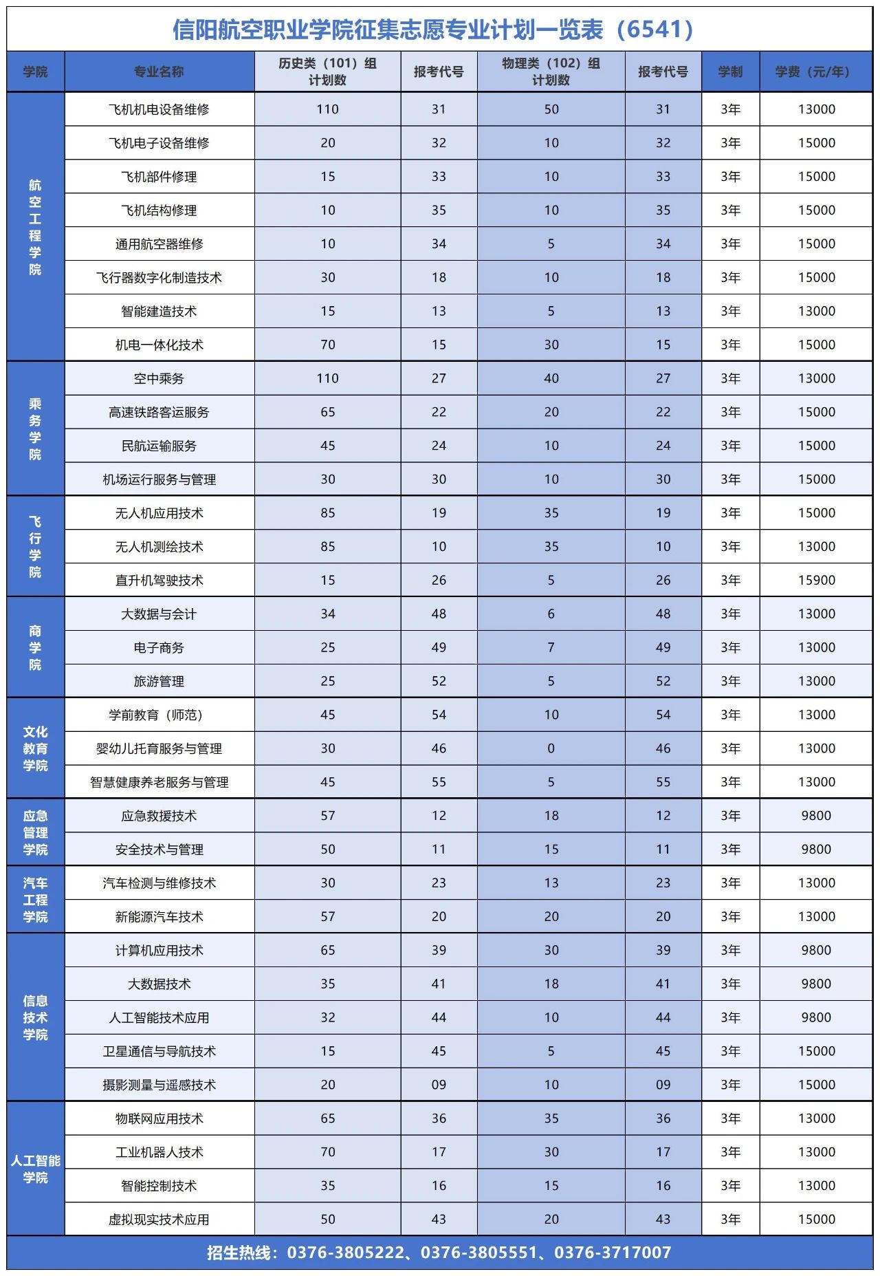 考生可关注报考信阳航空职业学院,招生代码:6541,征集志愿专业计划如下: