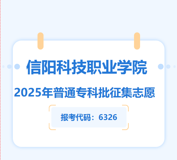 各位考生及家长们朋友们,大家好!2025年高考录取工作正如火如荼地进行中,目前,信阳科技职业学院普通专科批尚有部分招生计划余额,投档线165分,拟历史组、物理组降20分备档(最终以河南省教育考试院发布为准)面向符合条件的考生公开征集志愿。报考代码:6326!