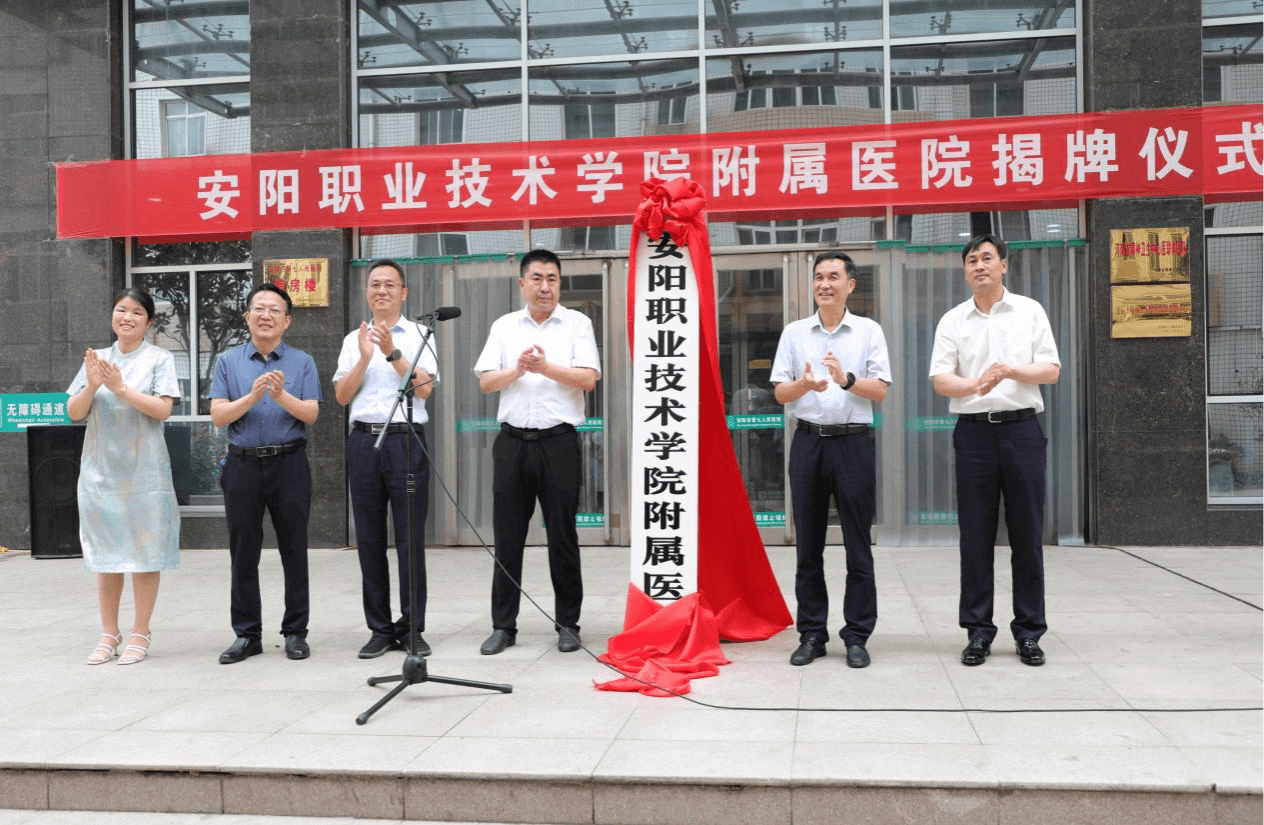 安阳职业技术学院党委委员、副院长马新和主持揭牌仪式,第七人民医院党总支书记王建坡和市人民医院医疗集团党委书记、院长张勇及安阳职业技术学院党委副书记、院长时剑峰先后发言。时剑峰表示,安阳职业技术学院附属医院的揭牌,体现了安阳市委、市政府对我市医学职业教育的高度关心支持,下一步,学校将充分利用和发挥附属医院的医疗资源和人才优势,在市人民医院医疗集团的大力支持下,更加有力地推动我市医学职业教育健康发展。