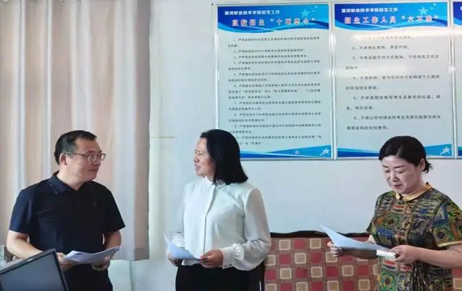 8月5日,漯河职业技术学院党委书记邢淑婕、院长薛存心、副院长程传蕊深入招生录取现场,对学院2025年招生录取工作进行调研指导。