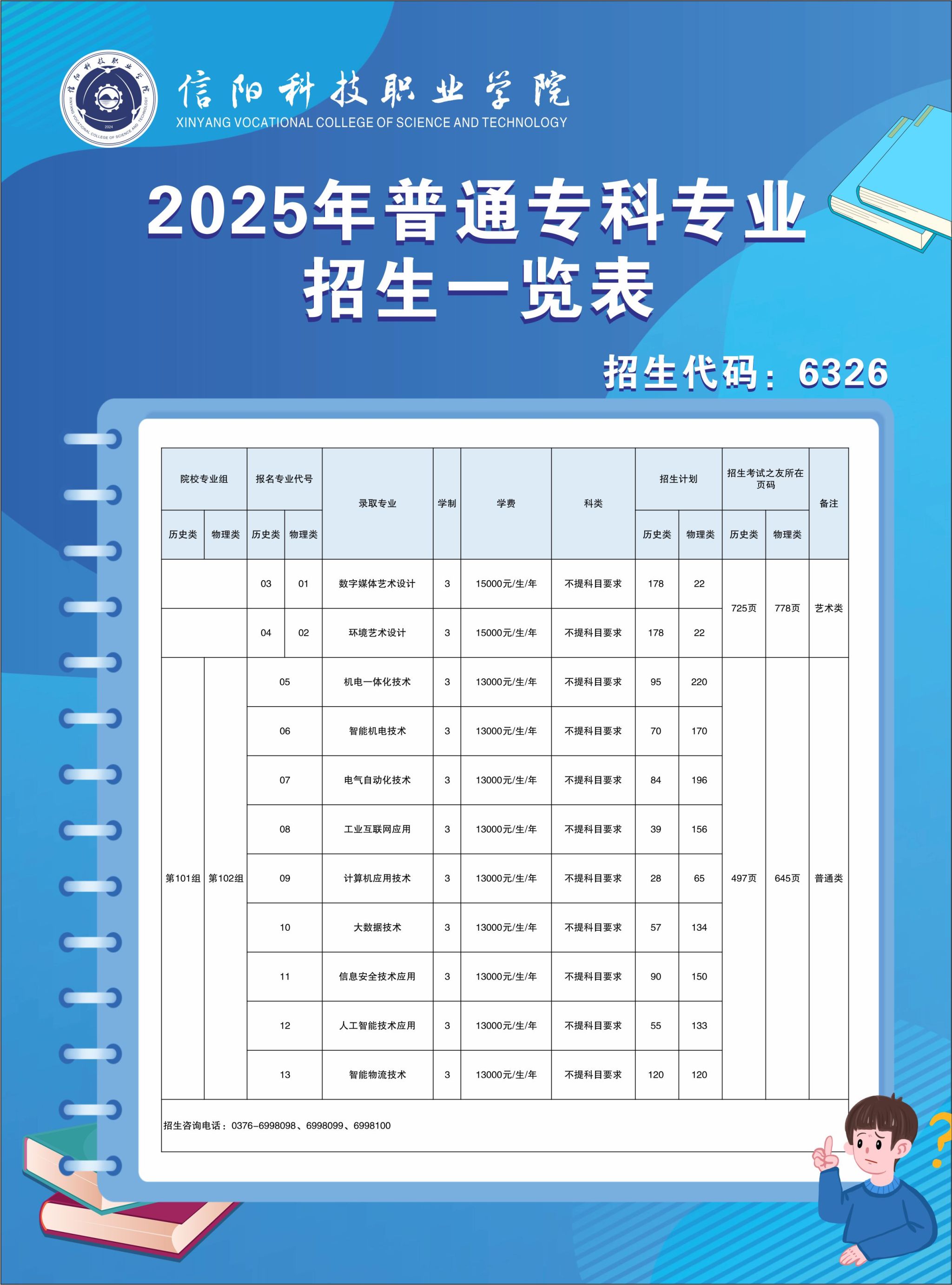 信阳科技职业学院2025年普通专科专业招生计划