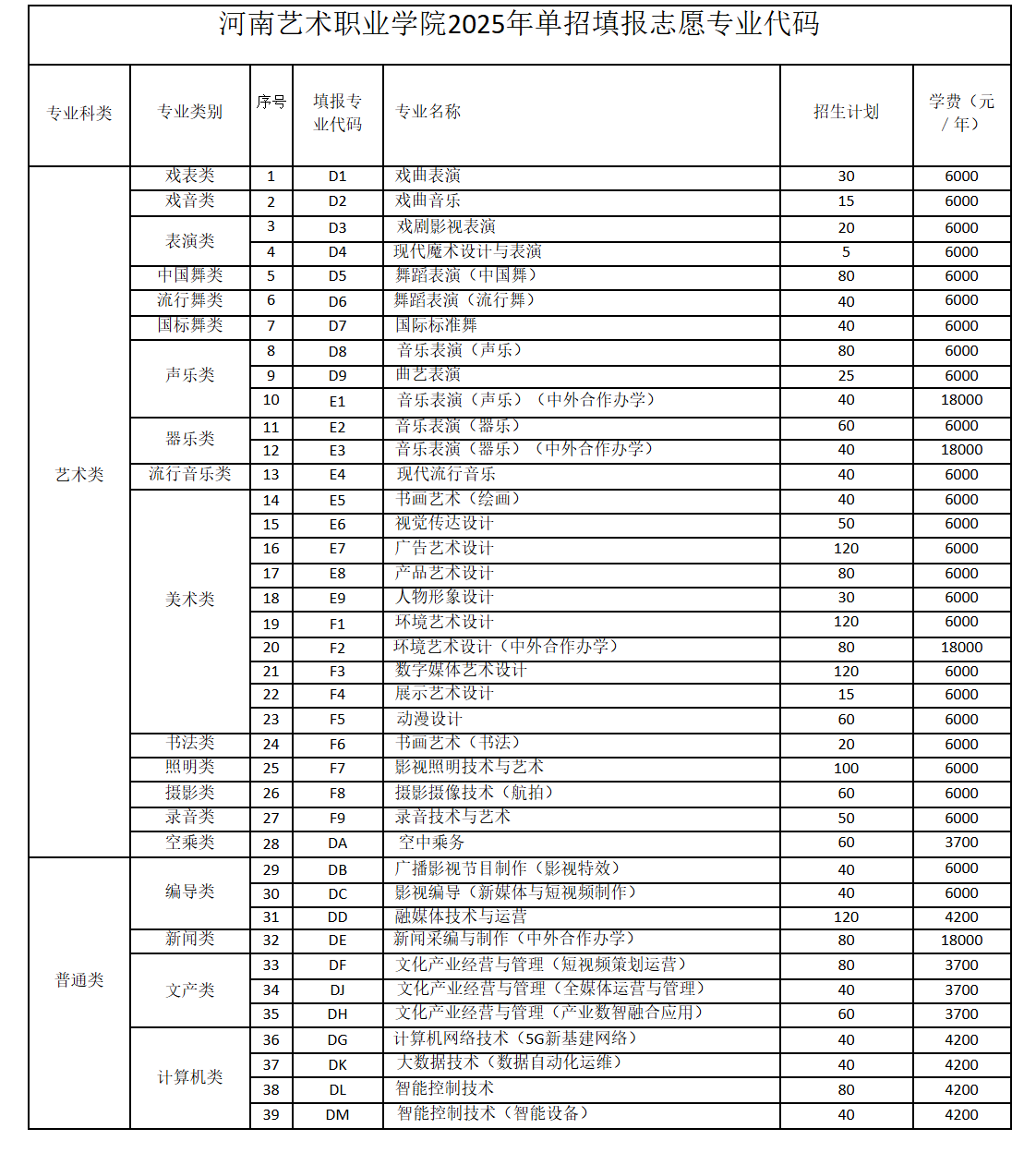河南艺术职业学院2025年单招填报志愿专业代码