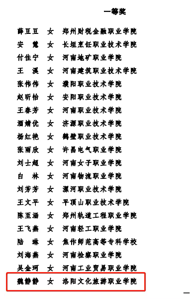 喜报!洛阳文化旅游职业学院教师荣获一等奖!