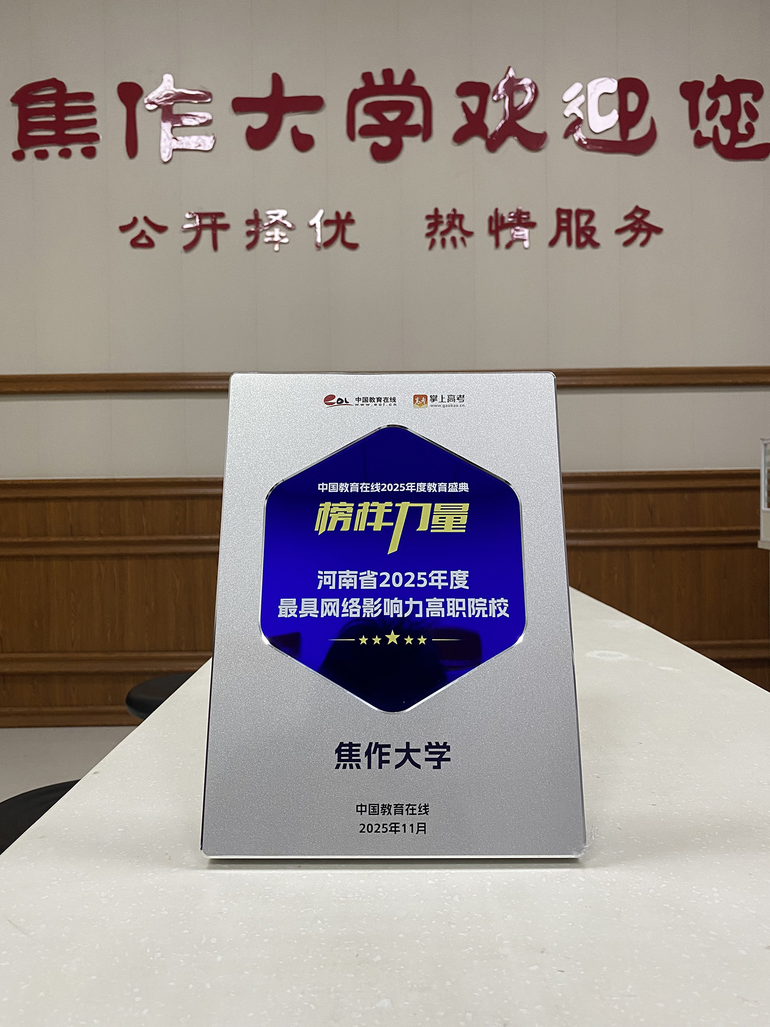 近日,中国教育在线“榜样力量·2025年度教育盛典”优秀案例名单公布。焦作大学凭借极具创新性与前瞻性的招生宣传策略,以及扎实过硬的宣传执行实力,从众多高校中突围,获评“河南省2025年度最具网络影响力高职院校”。