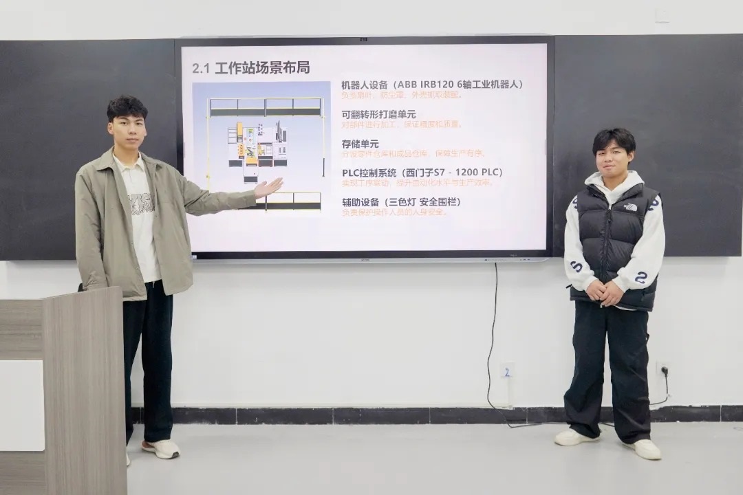 一等奖团队陈九方、张顺康:“最初连仿真软件参数调试都会出错,在赵艳老师逐行代码的指导下,我们逐渐掌握了‘需求分析—系统验证’的完整逻辑。现在能独立完成从机械设计到算法优化的闭环开发,这种‘解决实际问题’的能力,是课堂上难以学到的宝贵财富!”