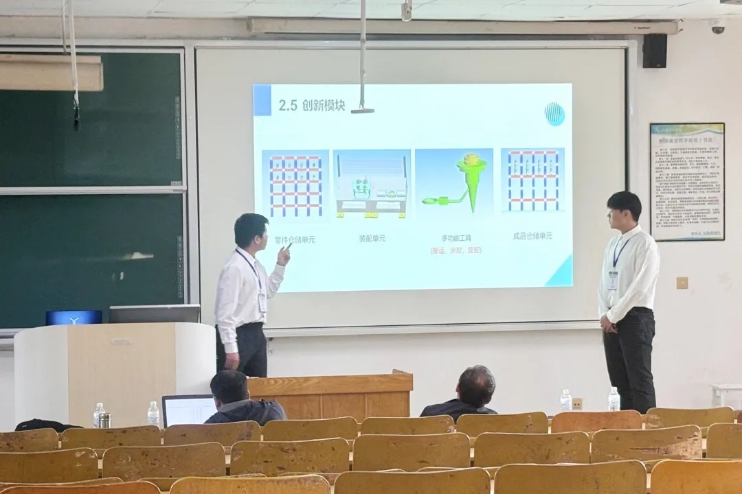 指导教师团队紧扣“机器人+制造业”方向,结合企业真实产线需求,选定“智能物料分拣与装配系统”作为攻关目标。赵艳老师带领学生拆解竞赛规则,梳理机械结构、控制算法、视觉识别三大技术模块,制定“理论—仿真—原型”阶梯式备赛计划;刘喜庆老师将产业前沿技术融入备赛策略,为团队明确“解决实际问题”的核心方向。