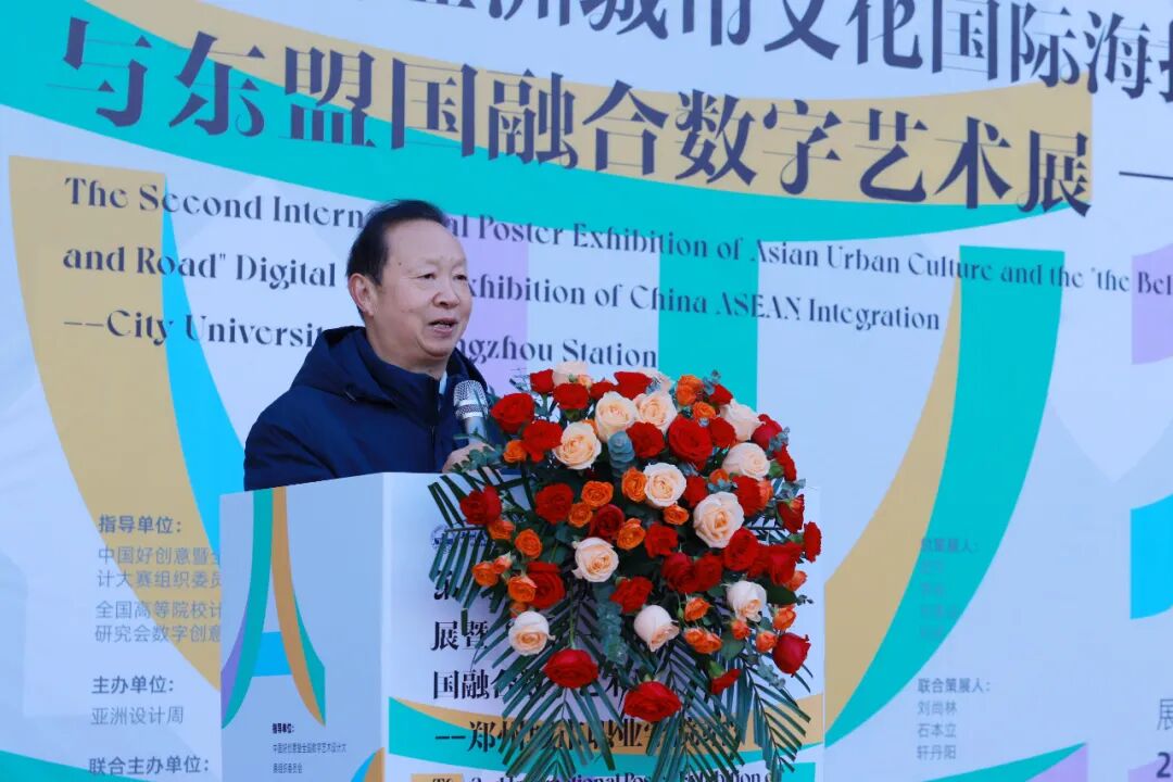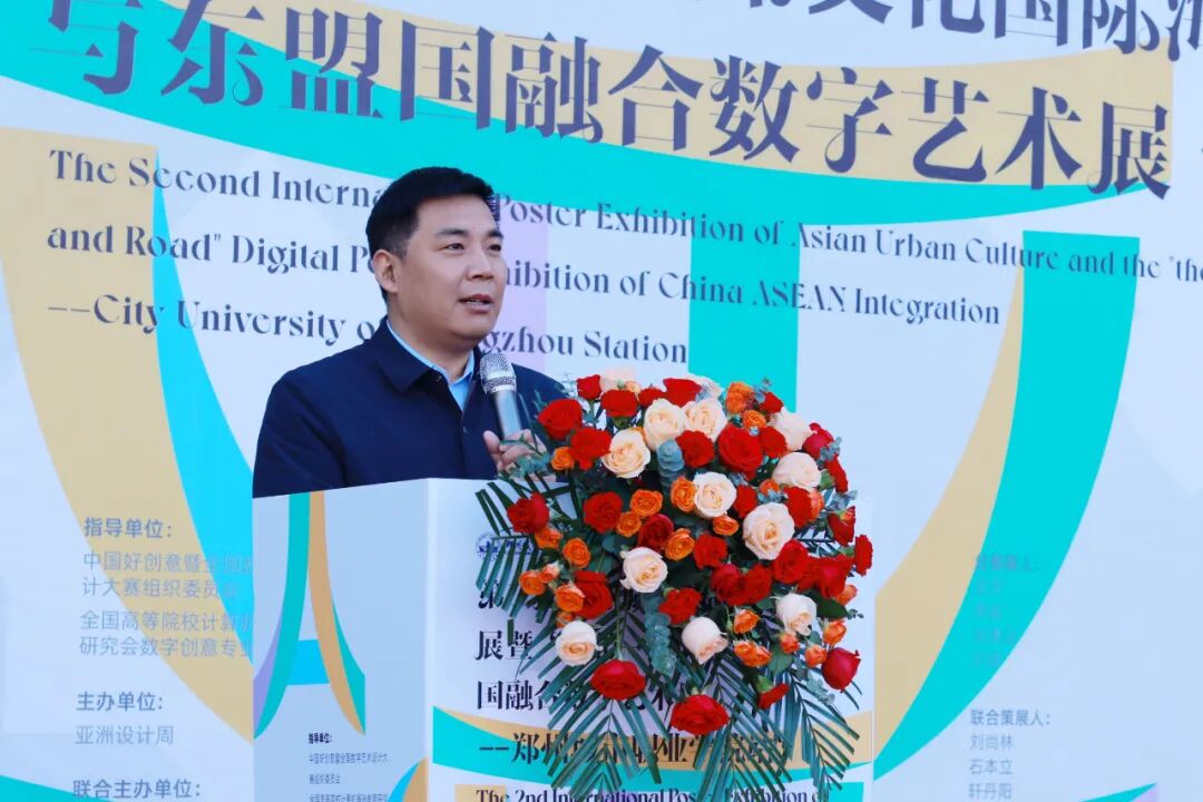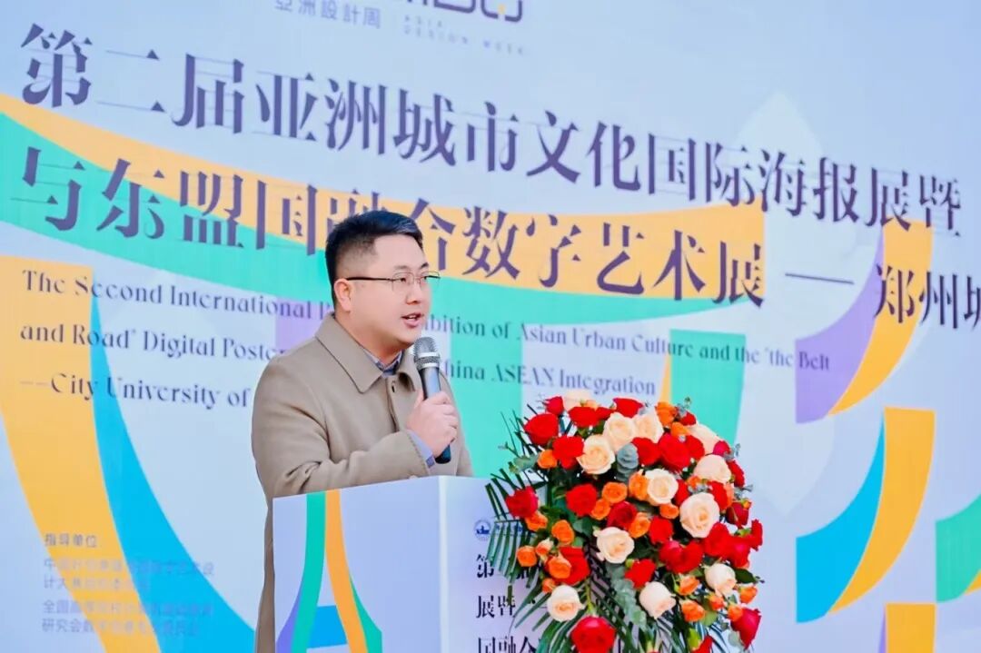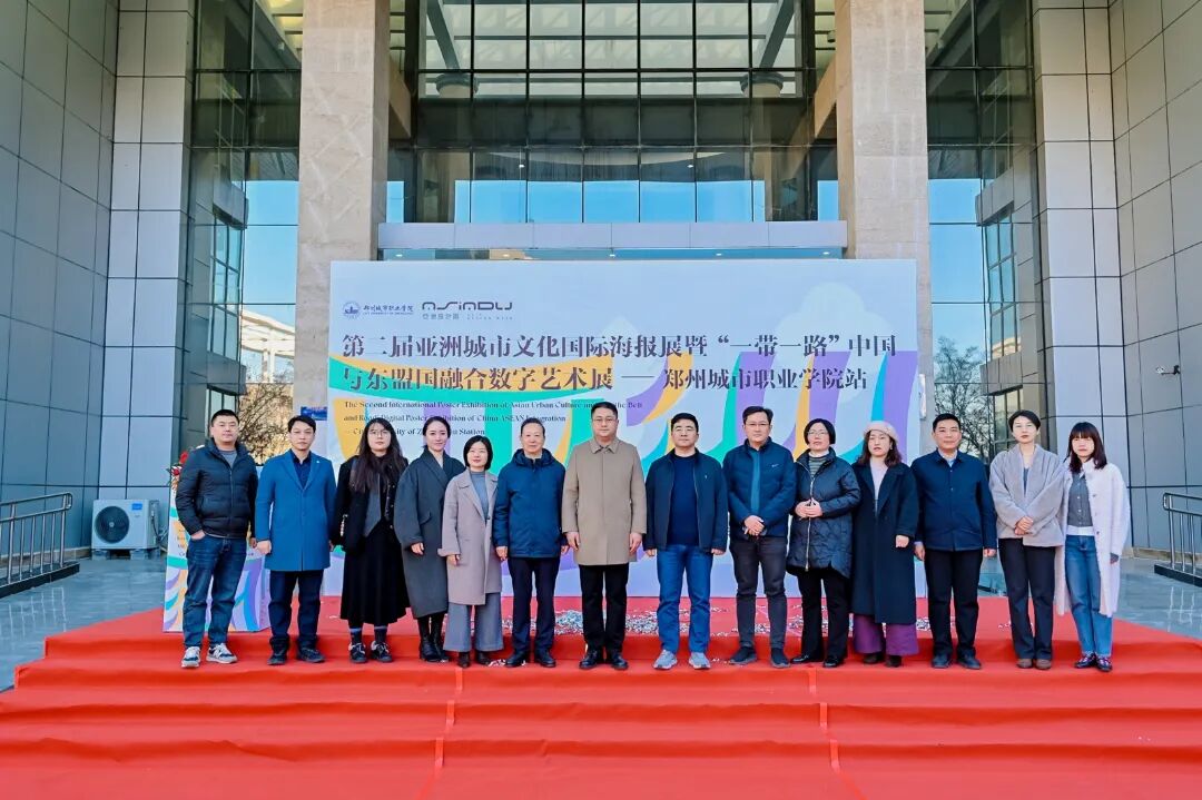 2025年11月19日,第二届亚洲城市文化国际海报展暨“一带一路”中国—东盟国融合数字艺术展在郑州城市职业学院隆重开幕。本次活动由亚洲设计周组委会主办,马来西亚平面设计协会、澳门海报设计协会、亚洲设计联盟联合主办,郑州城市职业学院承办,并获中国好创意暨全国数字艺术设计大赛组织委员会、全国高等院校计算机基础教育研究会数字创意专业委员会指导支持。来自政府、高校、行业协会及艺术设计领域的嘉宾汇聚一堂,共同见证这场融汇数字艺术、青年创意与文明互鉴的国际盛会。